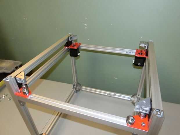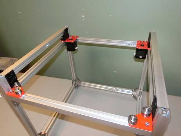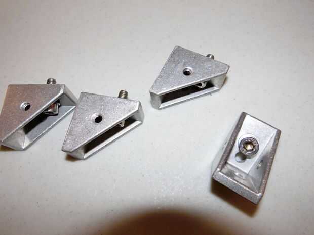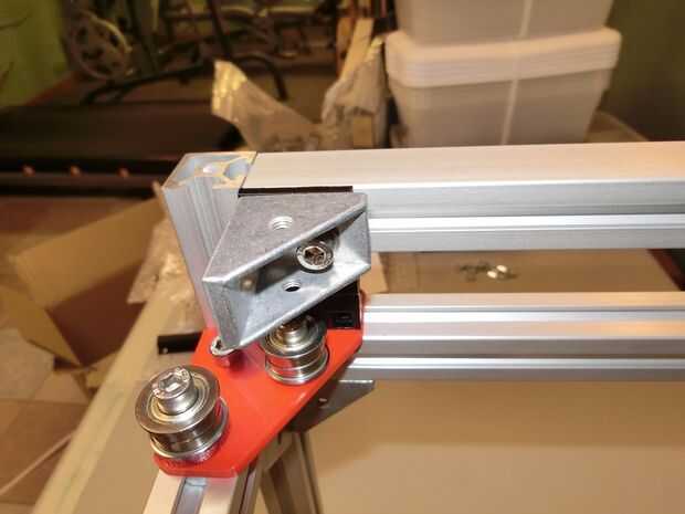 5. Alinee una tuerca en t de cada parte de extrusión C2 acaba de instalar con los agujeros en las piezas de plástico. Alinear subconjuntos del paso 4 contra extrusiones de plástico, empuje los pernos existentes a través y ceñidos de extrusiones de C2.