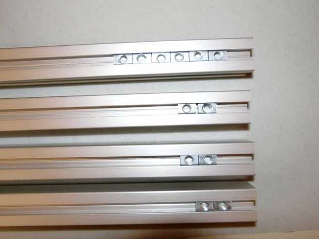 1. Coloque las partes G18 en ranuras de extrusiones C2 como se muestra. No hay las tuercas en T en las ranuras que no se muestra. Tomar nota de la tuerca de T falta en la extrusión de 2 º de la parte superior como se muestra en la figura 2. Sean 3 tuercas en esta protuberancia.