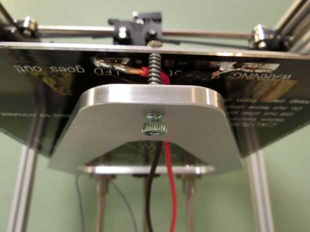 2. Coloque la parte G15 en lugar en la placa del eje de Z. Garantizar que plenamente han preparado la cama antes de instalar, como después de este punto será más difícil de soldar a la Junta o fije los termistores.
