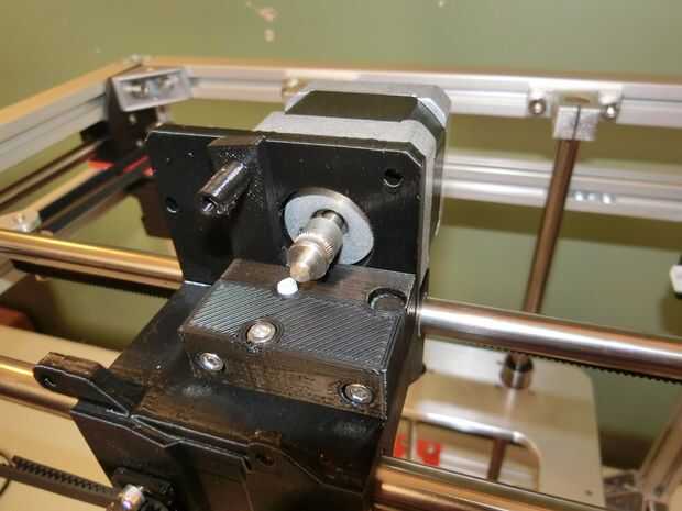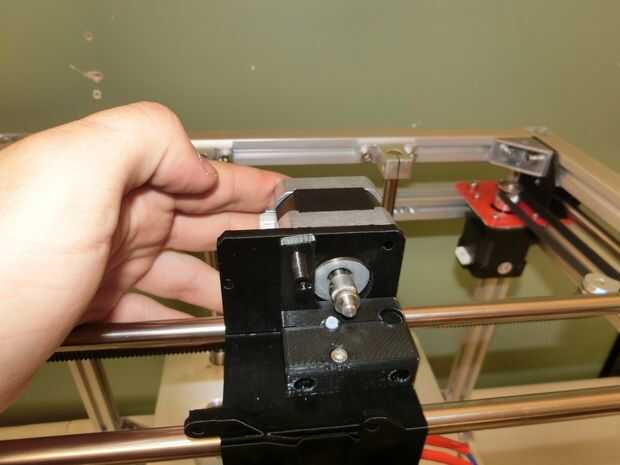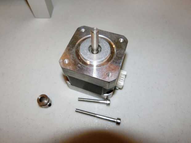 1. Deslice parte G14 en el eje del motor E3. Alinee el tornillo de ajuste en parte G14 con la muesca en el eje del motor paso a paso. Apriete los tornillos sólo lo suficiente para mantener parte G14 en el lugar, pero nos va a mover esto más adelante para no ir demasiado apretada.