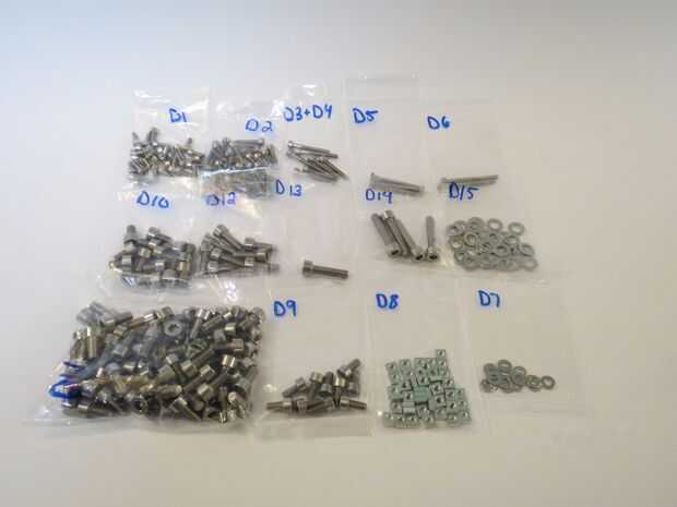 Nota: Preste especial atención en cuanto a longitud del perno. Porque la impresora es bastante compleja, hay una variedad de pernos diferentes tamaños y longitudes y usted no quiere estos mezclados!