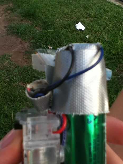 Reutilizados un motor roto y el alambre de un juguete así en primer lugar usted necesita limpiar y arreglar las partes. Una vez completada la tarea todo lo que debe hacer es la correspondiente a una vez que haya finalizado la cinta ellos o si puedes algo use un fósforo y fundir los cables y cinta.