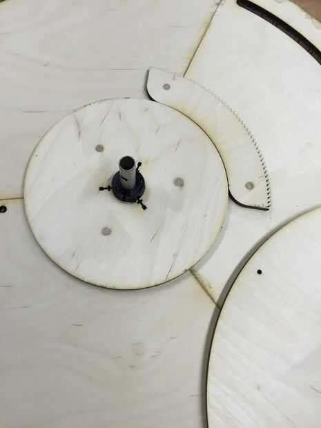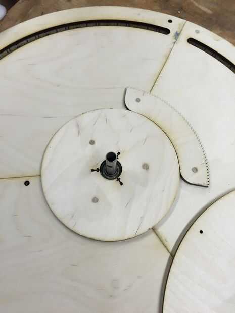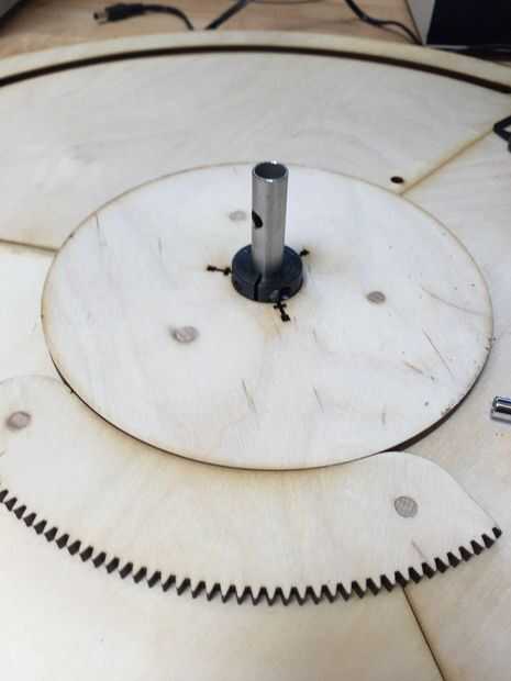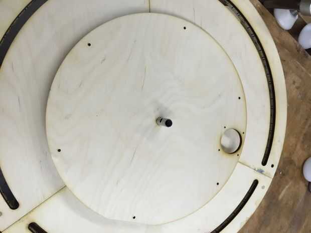 La razón esto era sin embargo un mal diseño, es que la conexión de la madera contrachapada press-fit no crea una conexión sólida, paralela. Los discos grandes, dando vuelta se tambaleó cuando se mudó. Volver a la mesa de dibujo!
