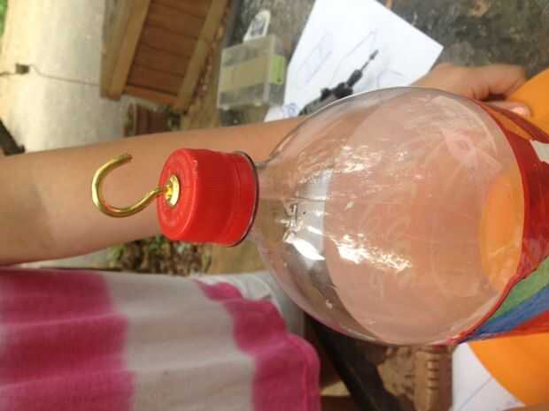 Querrá colgar el comedero.  Para ello, necesitará añadir un gancho en la tapa. Utilizando el taladro, perfore un agujero en la parte superior de la tapa que es del tamaño de la pieza del tornillo del gancho. Una vez que ha perforado el orificio, usted necesitará usar un destornillador y el tornillo en el gancho (o, si más fácil, puede torcer el gancho para fijarlo en el agujero).