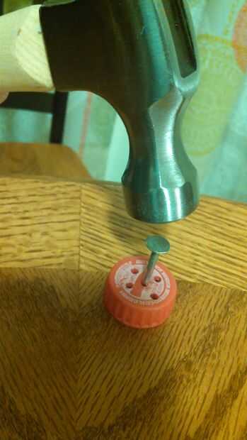 8. usar el martillo y clavos para meter 5-6 orificios en la tapa de la botella 3