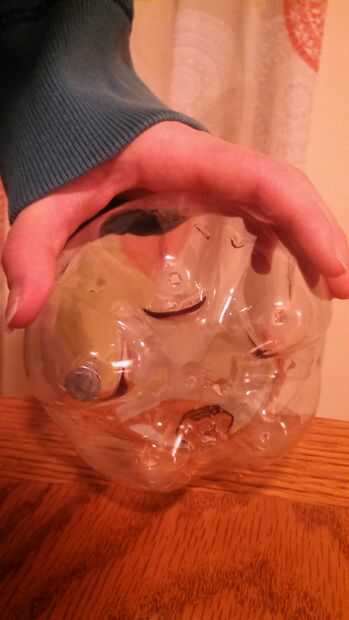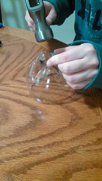 6. usar el martillo y clavos para meter 5-6 orificios en la pieza de fondo de botella 3 (véase sobre imagen)