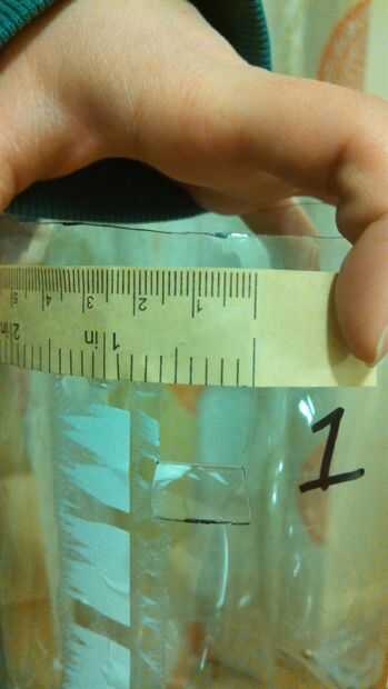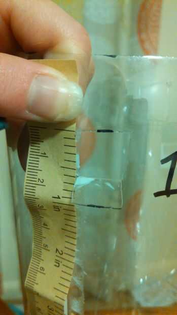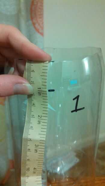 9. usar el cuchillo Exacto para cortar un 1/2 pulgada por aleta de 1/2 pulgada 1 pulgada de la parte superior del frasco 1 (ver arriba imágenes). Esta aleta es lo que le permitirá alimentar sus organismos acuáticos.