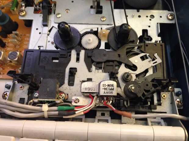 Quite los tornillos de la parte inferior de la pista de cuatro y estallido de la tapa. Taladre un pequeño agujero en el lado de la pista de cuatro y otra en el lado del Walkman, y guiar los cables de la cabeza del juego extra a través de estos agujeros. La soldadura de los tres cables a donde originalmente fueron conectados a la PCB.