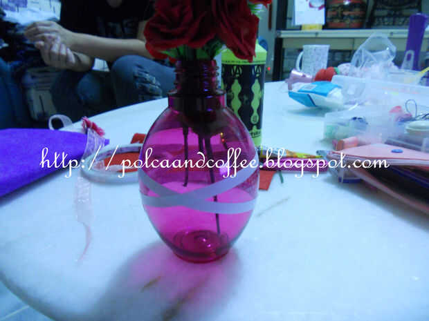 Donde se use la cinta de doble cara y cinta adhesiva alrededor de la botella (he hecho una sección si notaste)