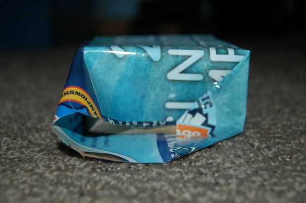 Cuando haya terminado, uno de los bordes y doblar (la imagen muestra cómo hacerlo).  Cinta de la parte superior del borde (uno que no está tocando el suelo).  Repita con el otro lado.