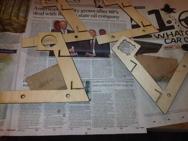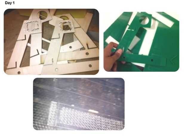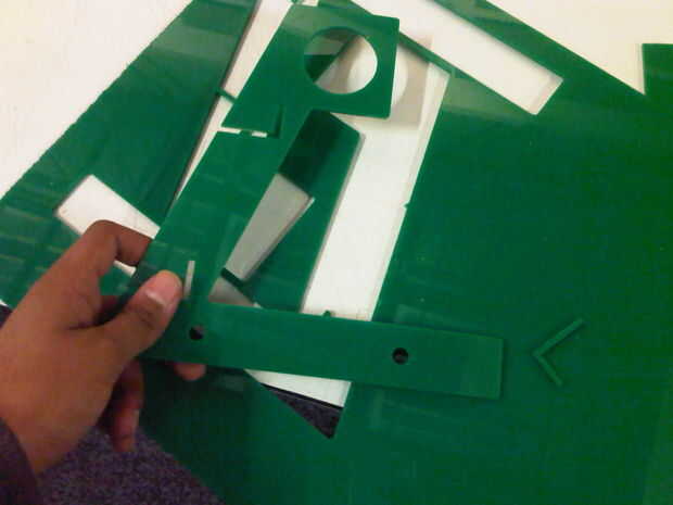 Luego de láser de corte de los componentes necesarios en el color verde.