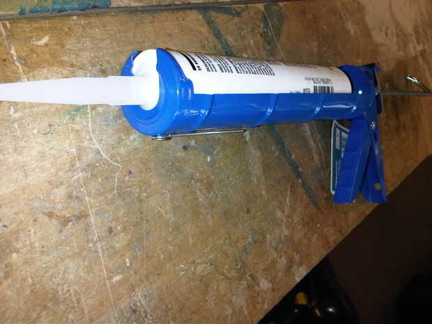 He cortan el final del sellador, une el cono del tubo. Luego corté la del cono del tubo de diámetro adecuado, usando un cuchillo Stanley. Luego inserté el sellador en la pistola de esqueleto.
