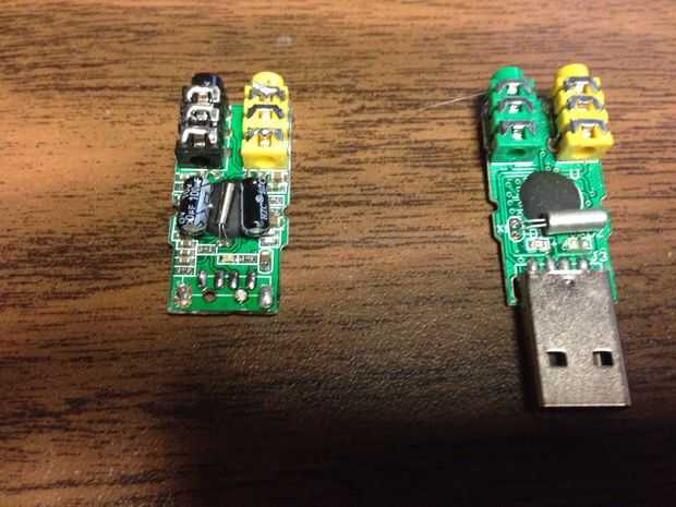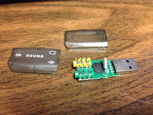Tengo algunas tarjetas de sonido USB diferentes de ebay por unos $3 cada uno. Tenga cuidado de que los tienes. Los que tienen las tapas adicionales disponen de un divisor de resistencia en las señales de audio. Sólo sacó 100mV y no se enciende el Opto acoplador.