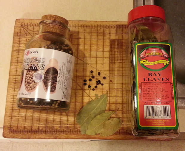 Añadir pimienta y hojas de laurel