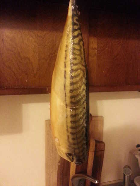 Sacar el pescado de la salmuera y caída 1-2 horas. Permita que drene la salmuera.