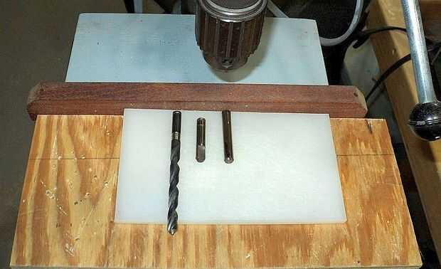Siguiendo las prácticas de buena tienda, alesaje y escarie un pedazo de chatarra primero para determinar la idoneidad de la aplicación antes de comprometerse a la pieza de trabajo definitiva. Comenzar con la perforación de un agujero de tamaño insuficiente, en mi caso era (8.73 mm) 11/32" dia. Esto fue seguido por la punta de la pala, luego el exprimidor. Aquí, técnica cuentas y me encontrado con un movimiento de picoteos, tratando de encajar y repitiendo hasta que llegué el movimiento del eje que quería, era suficiente. Es una prensa del taladro es muy conveniente para este trabajo utilizando baja velocidad, pero cuidado de perforación a mano alzada puede llevar el día también.