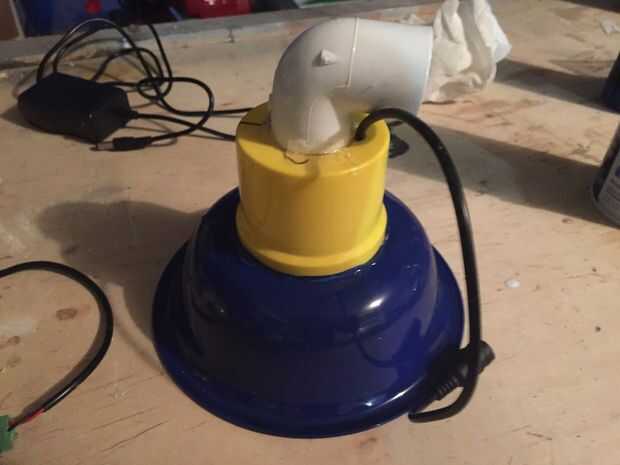 El agujero en la tapa de plástico debe ser lo suficientemente grande como para adaptarse a la pieza de codo PVC de 90 grados. I mina colocada en la tapa y trazada alrededor de él y luego utilizar mi taladro y un cortador de la caja para hacer el agujero lo suficientemente grande y limpiar los bordes.