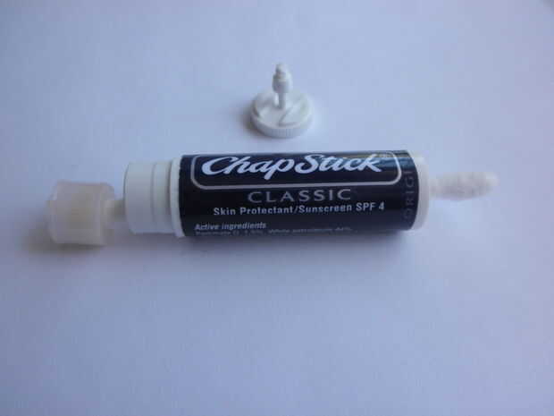Primero tomar el tubo de chapstick y twist rompa hasta el chapstick es hacia arriba y deséchela. Coloque la parte sinuosa en el agua caliente durante unos 15 segundos luego agarrarlo y llevarlo a cabo. Corte la parte larga sobre la muesca. Palillo del q-Tip a través del fondo para expulsar la pieza redonda que sostenía el labio protectant(chapstick) reemplazar la parte inferior encajándola de nuevo. Ahora tienes un secreto escondite de dinero en efectivo, etc..