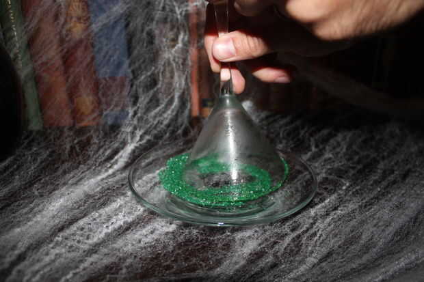 Pulsera del resplandor. Activar una pulsera del resplandor verde y gire sobre sí mismo dos veces y caer en el cristal para crear un extraño brillo de residuos tóxicos de la película de horror.