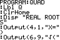 Programa de la fórmula cuadrática para TI-83, 84 calculadoras