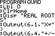 Programa de la fórmula cuadrática para TI-83, 84 calculadoras