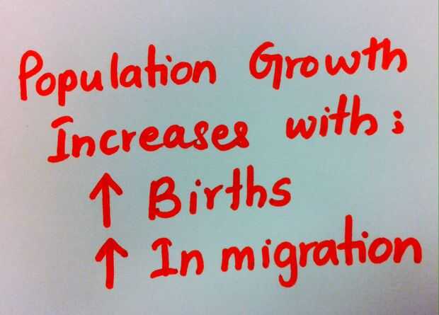 2. aumento de la migración en la población - un aumento de la migración en la población aumentará el tamaño de la población si la migración hacia fuera es comparativamente más pequeña en número.
