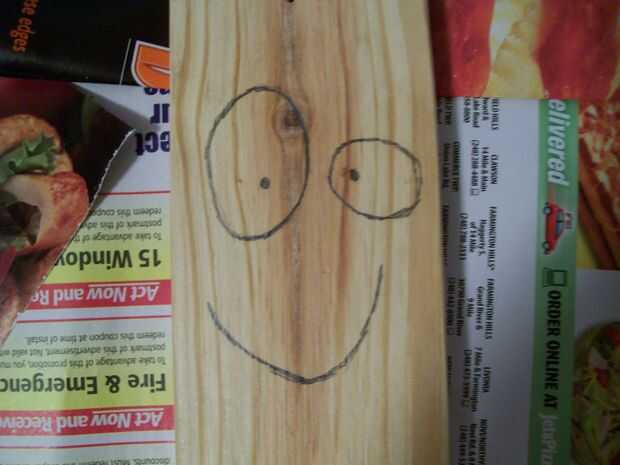 Tomar un lápiz y bosquejo hacia fuera una cara rápida en el tablón. Tratar de que al igual que la cara del tablón.