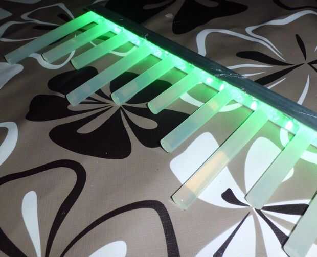 Pegamento caliente tus palillos en cada segundo LED. Sólo Aplique pegamento caliente en un extremo y presiona en LED. Agregar poco más de pegamento a los lados. Continuar con otros palos hasta que te aburras...:)