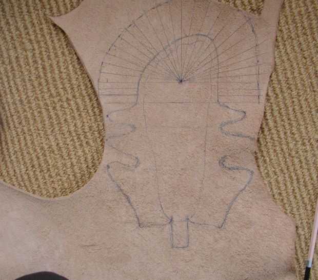 El siguiente paso puede omitirse, pero es útil como una guía visual: utilizando una regla, dibuja un ventilador desde el punto medio de su pata delantera a la línea de hace 5,5 cm fuera de los dedos. Además, a dibujar líneas en la 2.5 área de cm por debajo del dedo del pie, como se muestra. Se trata de los 'dedos' que envuelve los dedos del pie. Como se puede ver desde el paso #2, hay un espacio entre algunos de los 'dedos' en la parte superior del ventilador. Hay no hay reglas para esto; el punto es sólo para que encajen muy bien alrededor de los dedos. Lo único que haría seguro, es no cortar los dedos más delgados de 1 cm. Pero difieren algo entre sí en tamaño no es un problema.