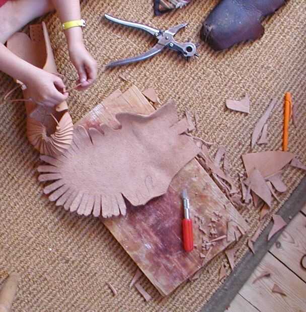 Un gran trozo de cuero, aproximadamente 2,5 - 3 milímetros de espesor. X-acto cuchillo o unas tijeras afiladas. Un punzón u otra herramienta para hacer agujeros en el cuero. Pluma o lápiz. Regla. Una tabla para cortar (yo uso una de madera).