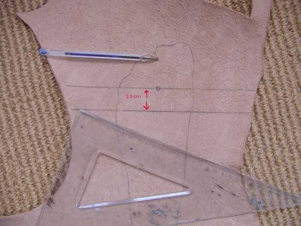 Dibujar otra línea debajo de éste. Usando mi pie como medida, se trata de aproximadamente 2,5 centímetros por debajo de la primera línea. Suya puede ser diferente, pero echa un vistazo a donde la línea se coloca en el pie; justo debajo de la charnela grande en el interior de su pie. La línea superior es justo por encima de él.