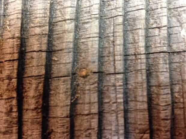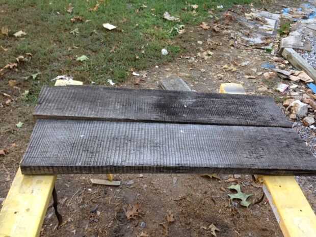 Estaba realmente sorprendido de encontrar este tablero roble casi sin ninguna putrefacción después de 25 años de exposición a los elementos. Madera roble más este tamaño habría sido totalmente descompuesto después de cinco a siete años. El tablero cortado a la mitad y lados cepilladas sirvió como el asiento de la silla. Usted puede ver claramente el carácter único que crea un molino de la motosierra en tableros. La última foto muestra el descubrimiento de la uña después corrí mi super imán sobre el tablero.