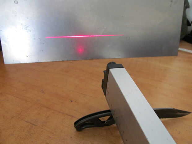 La manija curvada tiene un montón de superficie a nivel de una línea láser justo.