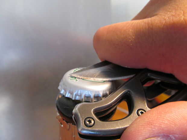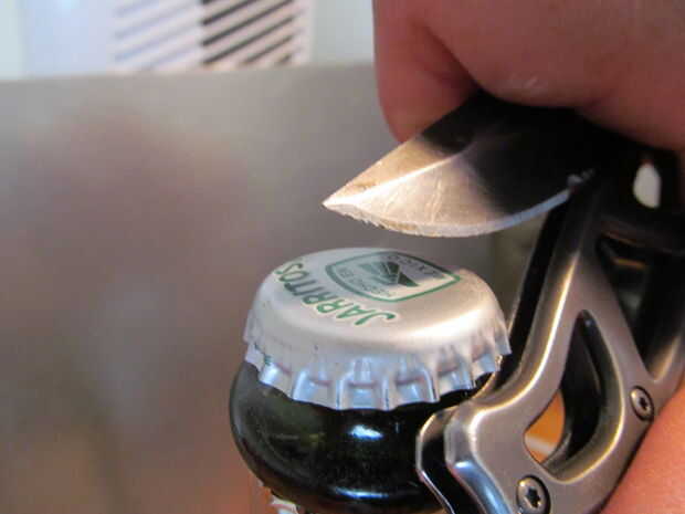 Utilizando el canal de la hoja junto con la hoja puede fácilmente abrir una botella.