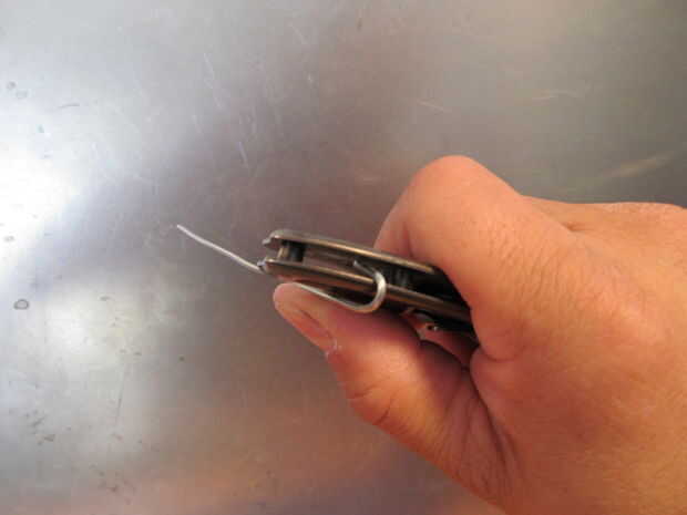 Esto es para cuando bloquee sus llaves en el coche. Un colgador de ropa y la forma final con el canal de la hoja.