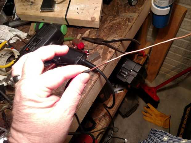 Corte un pedazo de cable a tierra AWG #10. Quería que mi cosita de alambre a 10", así que empecé con un 11" pedazo de alambre.