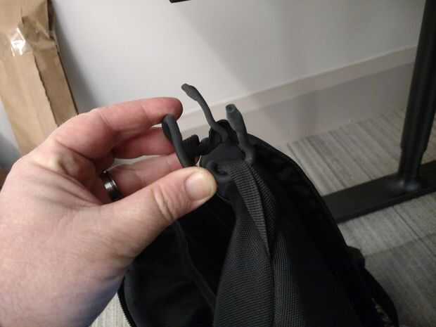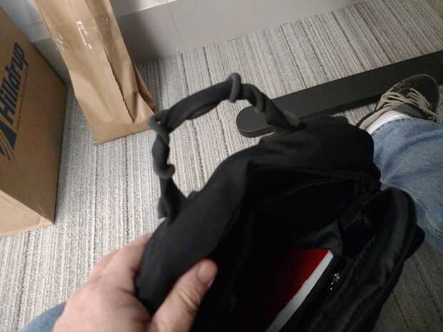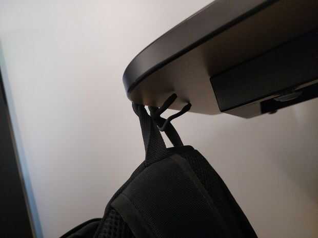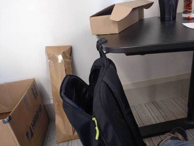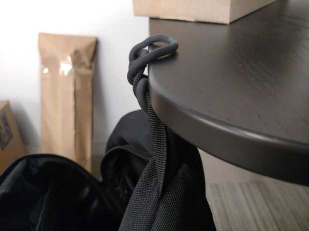 Mantengo mi mano alrededor de la manija de mi Back Pack. Proporciona un buen agarre y funciona como un soporte de escritorio.