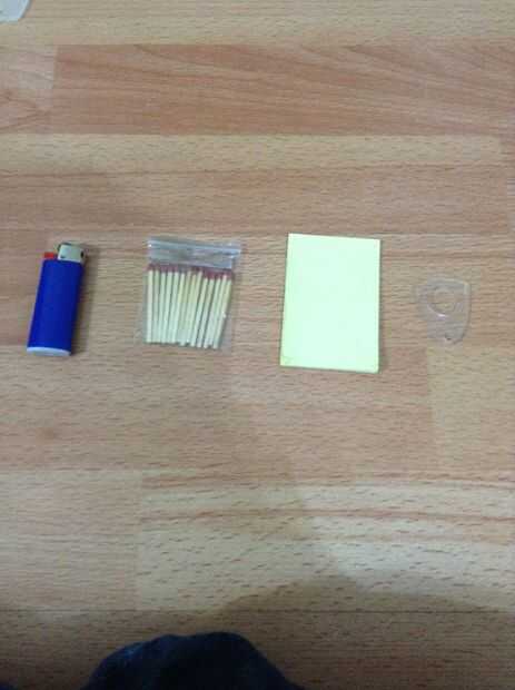 elegí encendedor mini BIC, un par de partidos (que puse en una bolsa de mini zipploc y algunos post quemadura y un len magniffying.