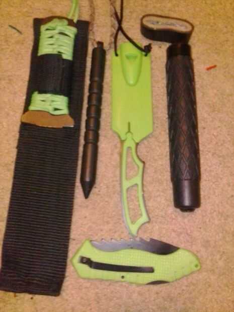 algunas personas pueden pensar que estoy loca pero esto es lo que "normalmente" en una bolsa dentro de alcance de brazos o de 1 a 2 minutos de mí. También guardo mi cuchillo pistola y luz en mí en todo momento por lo que puedo llegar a mis cosas. Debo llamar a esa bolsa una todos los días llevan versión 1.1 o error a bolsa 2.0 jajaja. También mantener un kit de "preparación" conmigo en que es útil para si tengo que pasar tiempo fuera de casa debido al tiempo o necesidad de trabajar.
