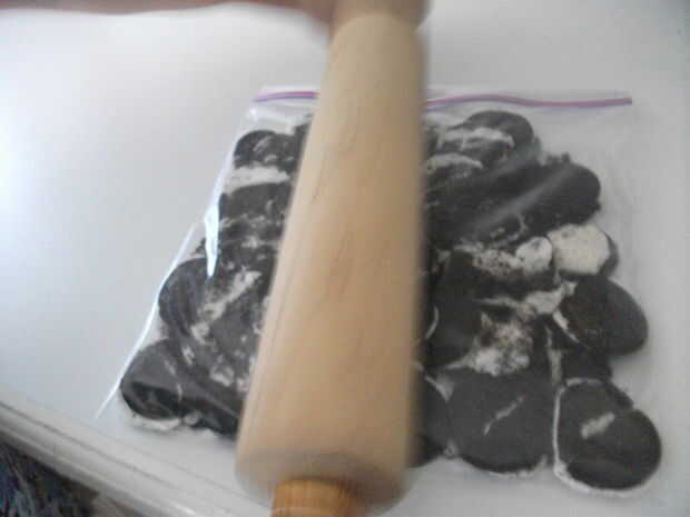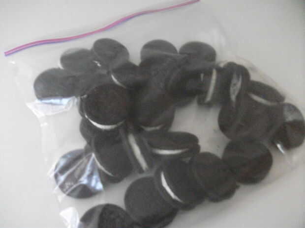 5. mientras usted está esperando el pudín establecer... Coloque las galletas Oreo dentro de una bolsa de Ziplock. Selle la bolsa y luego empezar a machacar la galletas Oreo con un perno de balanceo de madera. Cuando la galletas Oreo está listo cuando la bolsa esté totalmente completa de piezas y no las cookies.