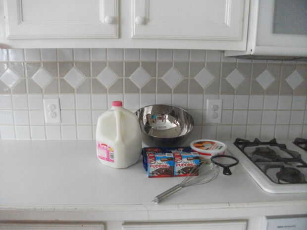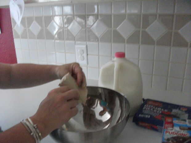 1. Abra y vierta dos cajas de Pudin de chocolate en el tazón grande.