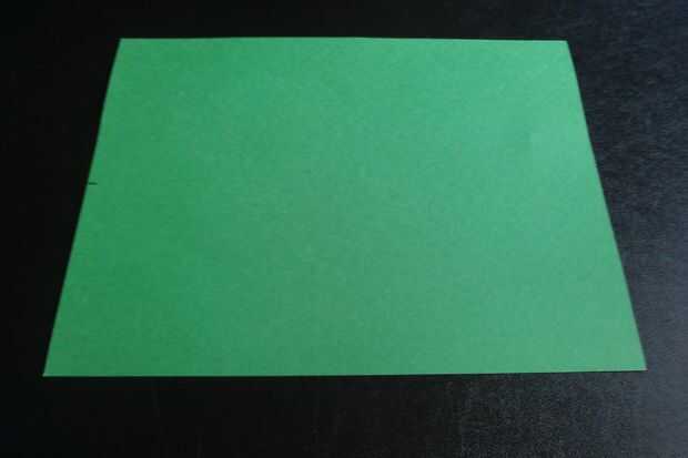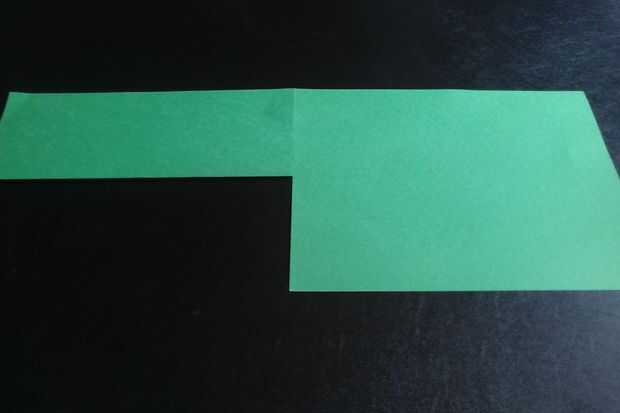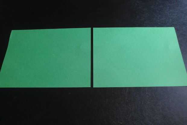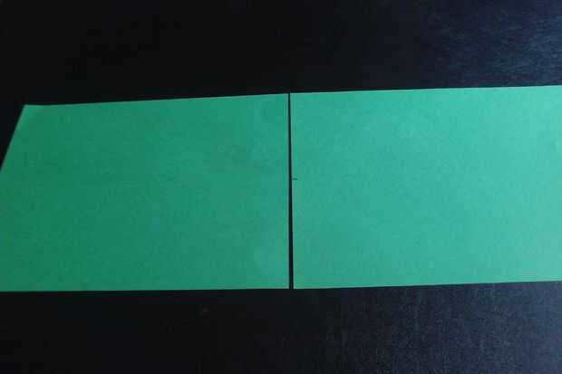 Tomar dos trozos de papel de construcción verde y línea en formato apaisado. A continuación, doblar uno de los periódicos en medio "hot dog estilo" (longitudinal) y desplegarlo. Marque el centro del doblez en el papel como se muestra.