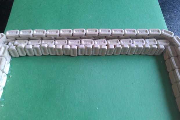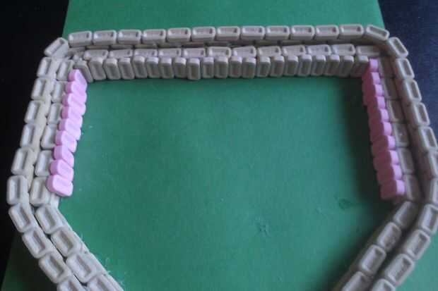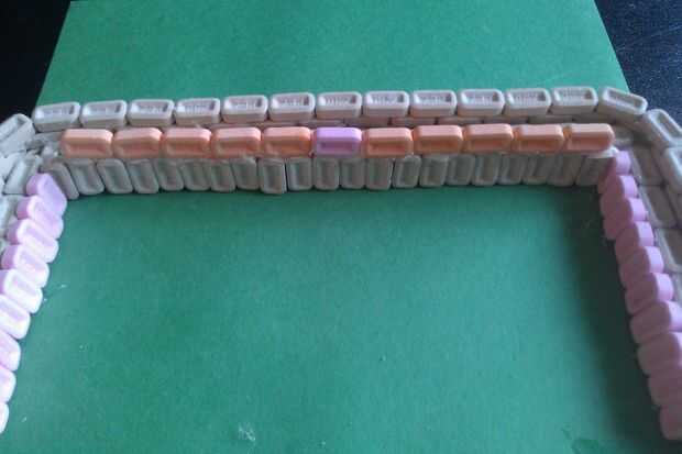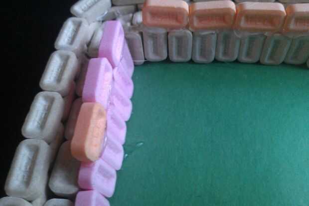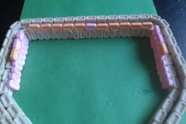 Añadir PEZ vertical a lo largo de la pared interna como se muestra. A continuación añadir caramelos horizontales a la parte superior del PEZ vertical. Es mejor usar diferente colores caramelos aquí para mostrar una diferencia en estructura.