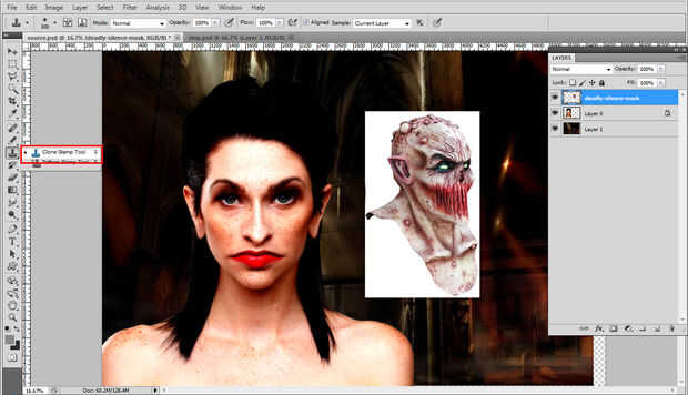 Seleccione herramienta para clonar en la caja de herramientas y las imágenes de la criatura de referencia de tu biblioteca de imágenes, bien si no tienes uno... Google se