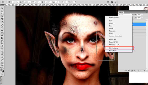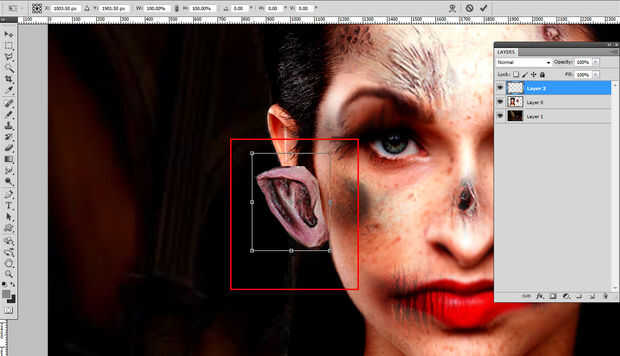 Permite obtener sus agradables orejas ahora! Seleccione oído de la imagen de referencia, corte con lazo de la herramienta y transformar en consecuencia con el fin de coincidir con el carácter. Puede que deba ajustar los niveles (CTRL + L) y usar ajustes de tono y saturación para emparejar el tono de color (CTRL + U) después de lo ajustes toma una copia de la oreja y tapa "Horizontal" para el otro oído Ref 14.jpg, 15 jpg