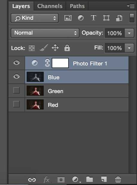 - En las capas Panel mantener comando + clic en la foto filtro de capa de ajuste