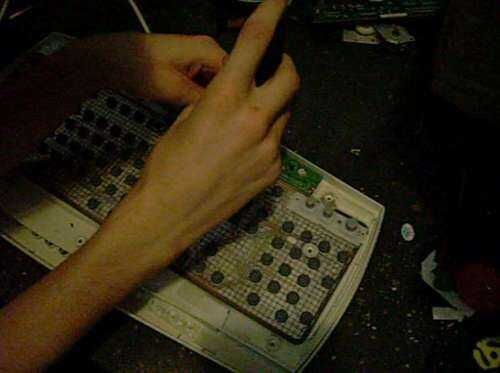 Se puede quitar lo que desee de los teclados, o dejarlo todo. Te recomiendo cortar las cuerdas, si va a salir placas de circuito impreso en. La única parte que necesita dejar en es la parte de goma que hace estallar detrás hacia fuera las llaves. Hay una excepción. Quité la parte de goma para el teclado hace el estante inferior, así actuaba más como una plataforma y no un tablero del resorte.