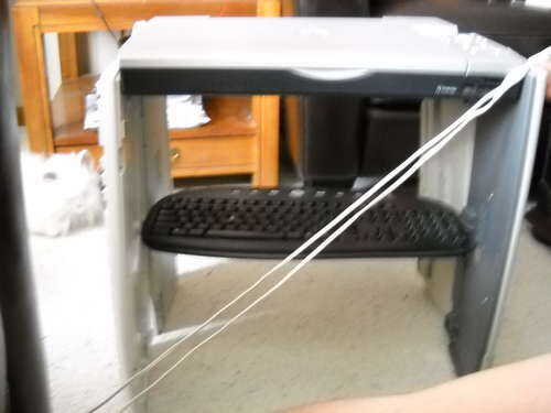 En los cuadros acabados, mucha de su fuerza viene del cable de la lámpara X en la parte posterior. (Y la plataforma) Para instalar este X, usted va a necesitar algo para cruzar la parte de atrás de su proyecto, utilicé un cable eléctrico de una lámpara de muertos. Asegurarse de tener suficiente cable (o cualquiera que sea su uso) para que sea esquina a esquina 2 veces, más un adicional de 3-5 pulgadas ya sea después de que se corta por la mitad.