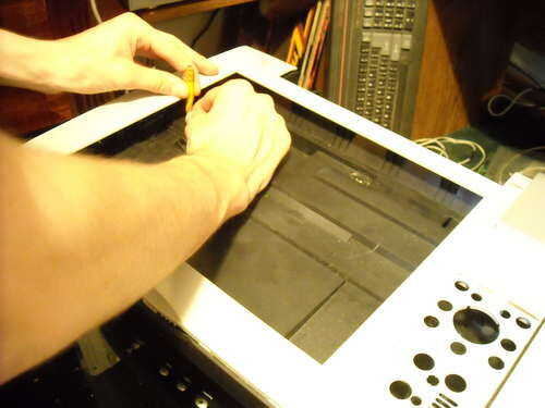 La mitad superior del escáner en lugar, trazar el contorno de la ventana en la parte inferior de la cama. Retire la mitad superior y usar algo para configurar una pared para guardar pequeñas cosas en su lugar. Si tu poniendo en cambio o unidades flash.