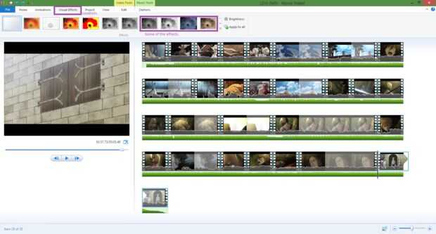 Efectos funcionan del mismo modo que basta con ir a la ventana en la parte superior llamada 'Efectos visuales'. Seleccione el clip y efecto y listo.
